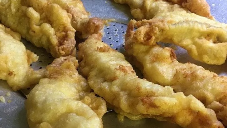 Poi, come per tutto, conta la materia prima che deve essere sempre di qualità. Serve un ottimo merluzzo che non deve essere totalmente dissalato. E un olio di semi di girasole alto oleico che resista alle alte temperature. Il primo segreto di un buon fritto rimane comunque quello di farlo al momento, quel gesto di gettarlo nell’olio bollente poco prima di servirlo è una modalità che serve a far riconoscere una delle caratteristiche più importanti ovvero la continuità fra pastella e filetto che non devono essere staccati, separati.