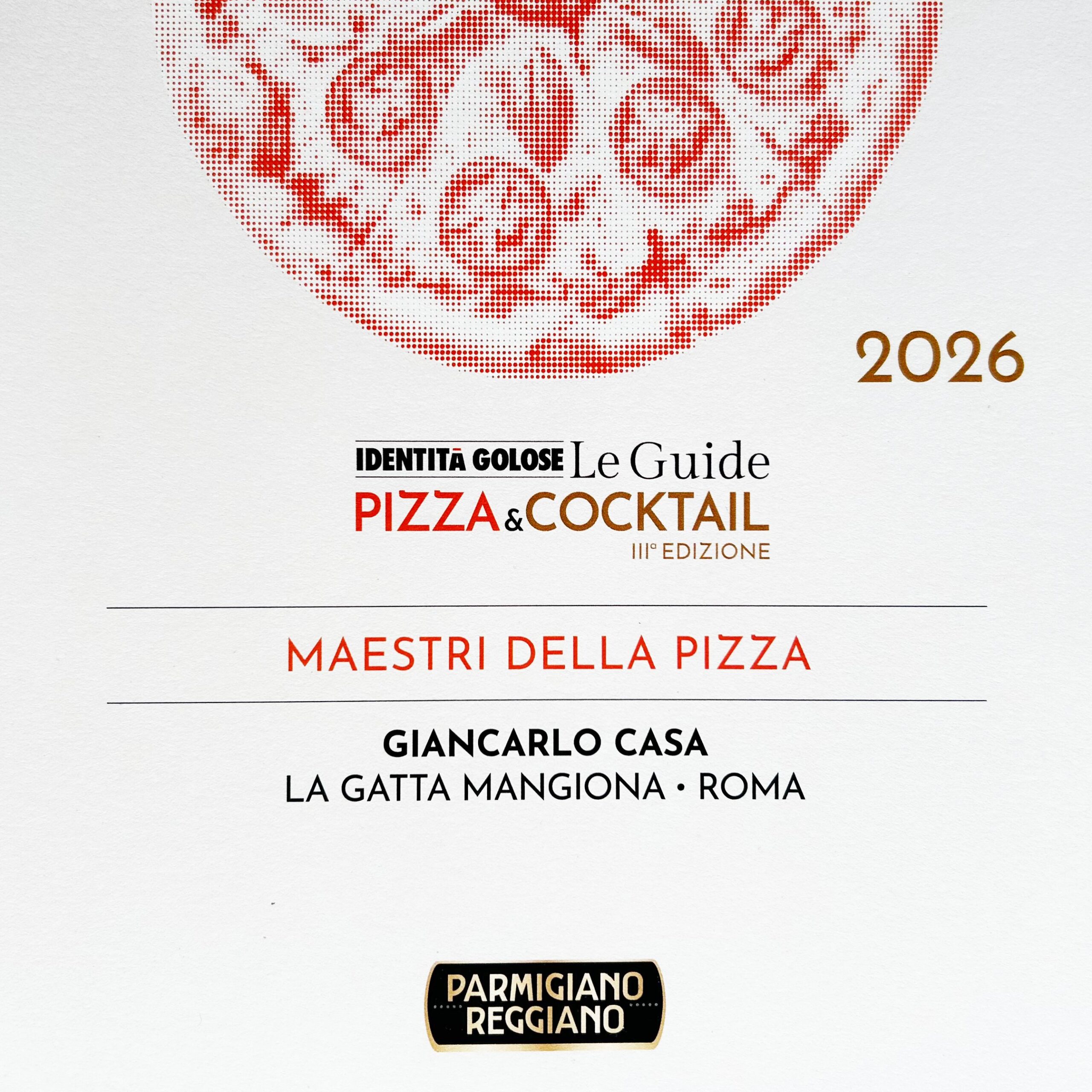 “Da più di un quarto di secolo questa tranquilla pizzeria di quartiere è sospesa tra familiarità e culto. Perché la rivoluzione della pizza, a Roma (ossia nella città dove oggi l’evoluzione del settore appare la più effervescente d’Italia), l’ha portata anche Giancarlo Casa. Un visionario che ha precorso i tempi e dunque, senza dubbio, un vero “Maestro della pizza”, con la sua sorniona La Gatta Mangiona.”