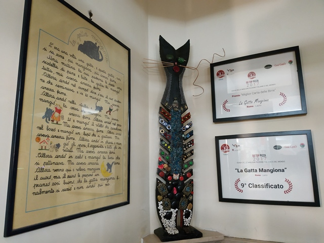 Per l’occasione La Gatta si è rifatta il look con un restyling decorativo e piccoli lavori tecnici che hanno dato nuova luce al locale di Giancarlo Casa e Sergio Natali. Rimangono protagoniste le opere artistiche della moglie di Giancarlo, Cecilia Capitani, autrice dei gatti esposti e del totem all’entrata, posizionato accanto ai premi di 50 Top Pizza, la guida online sulle migliori pizzerie in Italia e nel mondo, che nel 2018 ha assegnato il 7° posto al locale e ha consegnato a Casa un meritato Premio alla Carriera.