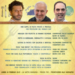Chiuso l’inverno con una bellissima serata-evento, apriamo allo stesso modo la primavera, questa volta in compagnia di due giovani e affermatissimi professionisti del settore: la mano di Gianpiero Tomei de L’Altra Osteria e i vini di Silvia Brannetti della Riserva della Cascina. Ci vediamo il 13 aprile, come al solito a La Gatta Mangiona!